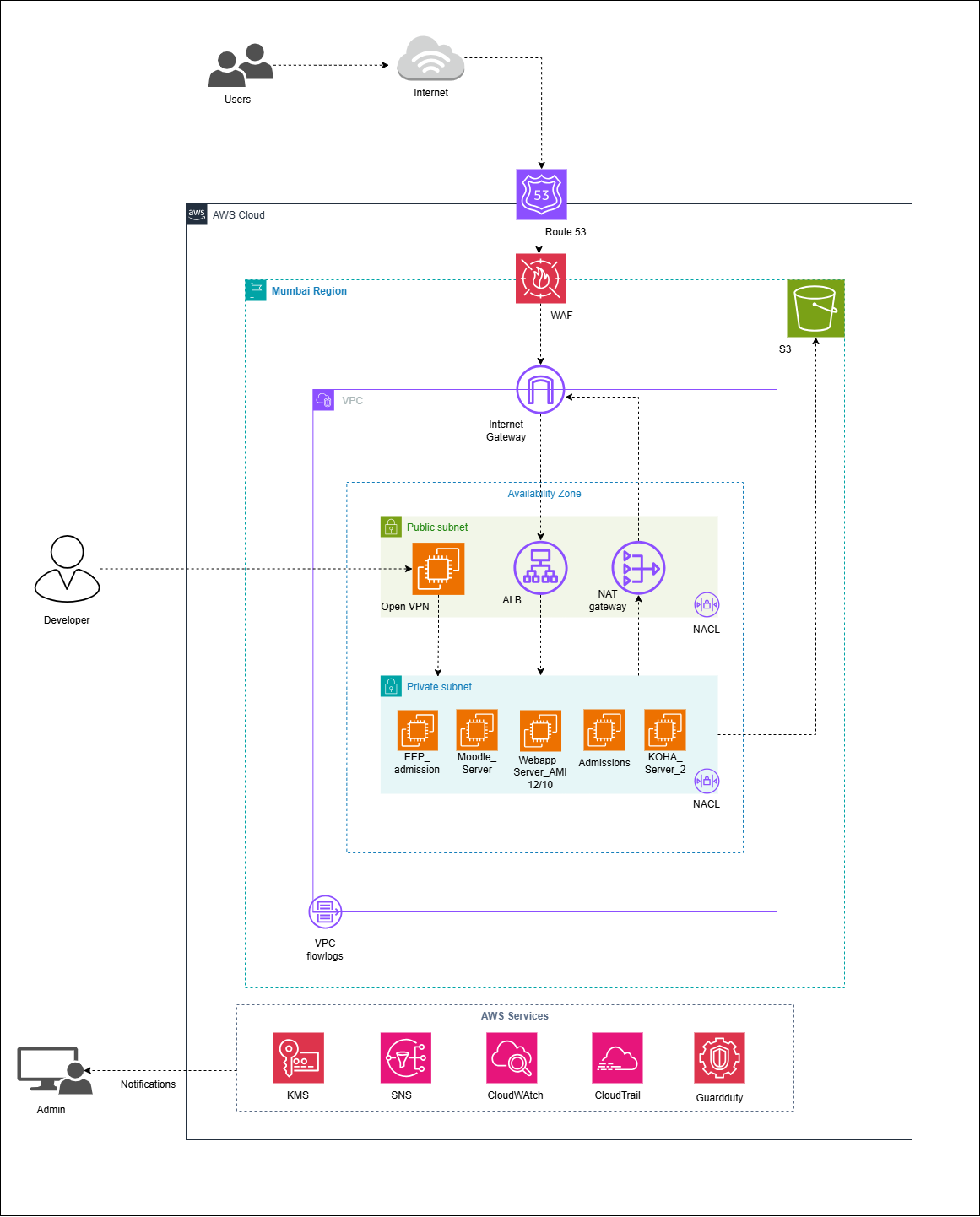 IIM Nagpur aimed to modernize its infrastructure by transitioning to a secure, cost-efficient, and scalable AWS environment. The customer sought high availability for production workloads while maintaining isolated development and staging environments to enhance reliability.The ultimate goal was to establish a resilient, efficient platform that minimized operational risks and supported long-term business growth.