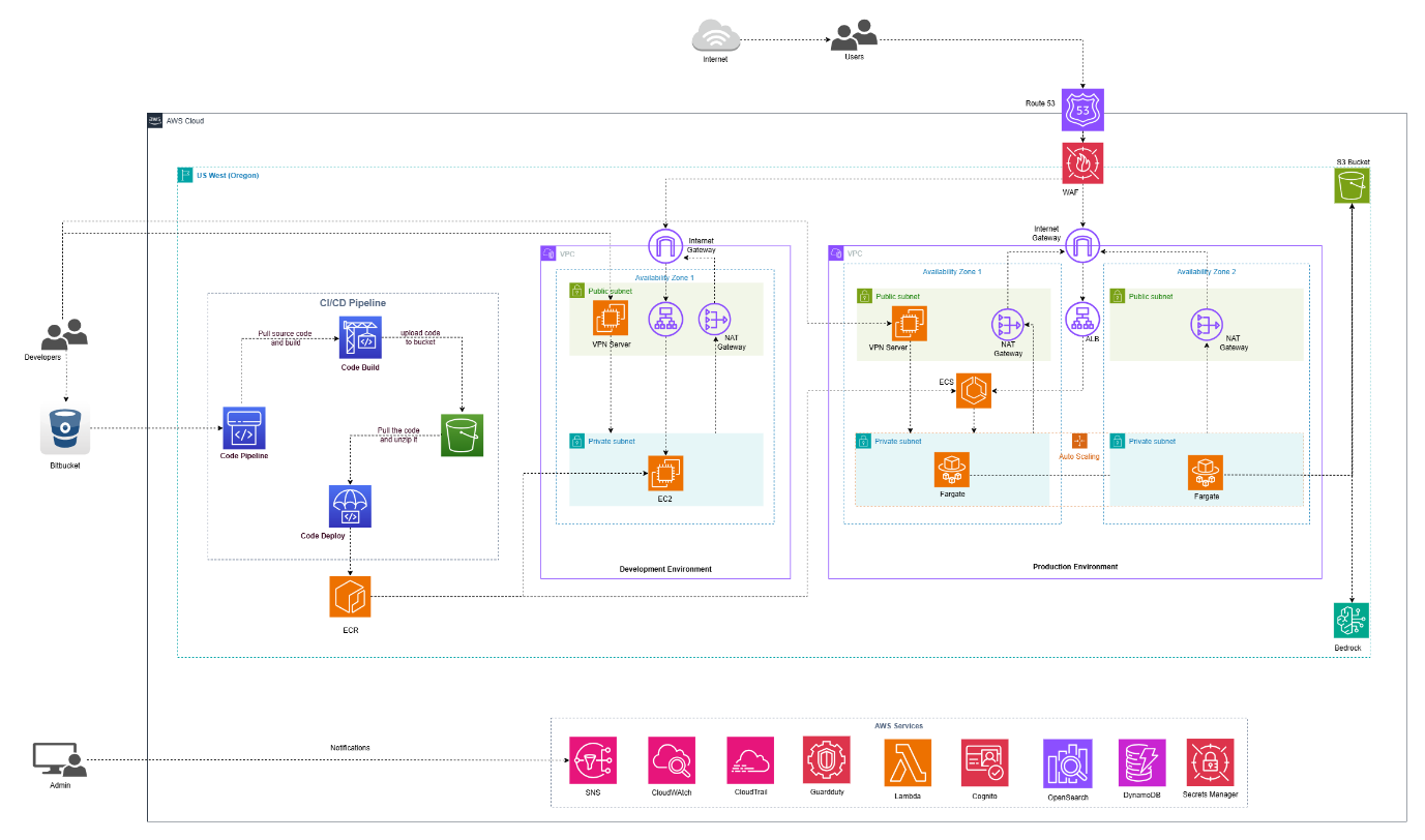- CI/CD Pipelines: Built using AWS CodePipeline, CodeBuild, and CodeDeploy, allowing automated deployments and fast iteration cycles.